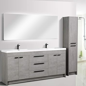 Eviva Lugano 72 Cement Grey Modern Bathroom Vanity With White Integrated Acrylic Sink